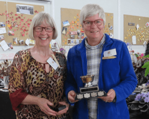After he lost his wife May in 1988, he found romance at the garden club. At age 90, he married Hazel (82). Bill enjoyed the club until he was 95! Hazel would phone and say, “Look out the window for your dad. If he’s not vertical, he’ll be horizontal,” and sure enough, sometimes he was! His namesake trophy is for those who love growing vegetables as much as he did!